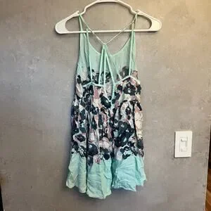 Free People Intimately Floral Strappy Trapeze Mini Dress Mint Green Small Petite
