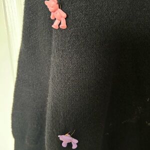 Chic black sweater with vibrant multicolor accents. Ideal for a playful touch.