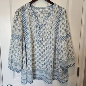Rose+Olive semi-sheer top with 3/4 length sleeves. Barely worn. Cute button at the end of the sleeve so you can roll up the sleeves if you desire.