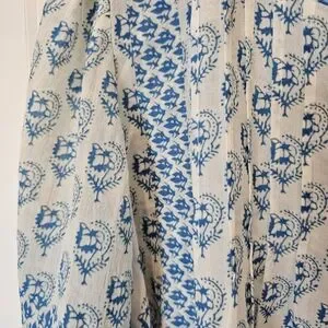 Color: Bright blue and cream. Gorgeous design.