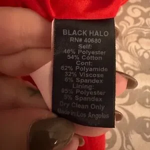 I have included the size chart direct from Black Halo website. This is a little snug on me but a size 4 Black Halo jumpsuit fits fine. 🤣. They may work best for a slim 6 or curvy 4.