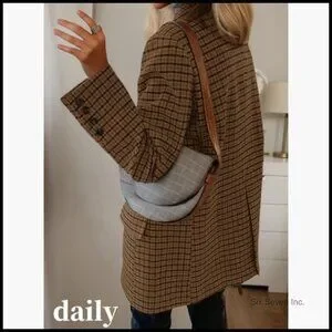 A fully lined, loose-fit blazer designed for elegant business casual wear. Features a sophisticated plaid pattern and functional pockets, making it a versatile piece for the office, meetings, or weekend outings across multiple seasons.