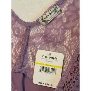 NWT Free People Hydrangea Lace Satin V-Neck Camisole Top Purple OB809904 Women M