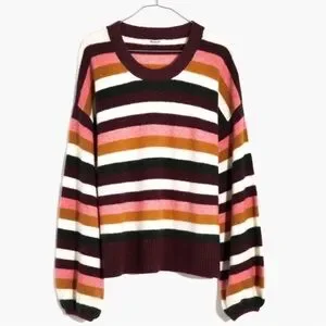 MADEWELL Payton Striped Merino Wool / Alpaca Blend Balloon Sleeve Sweater Size M