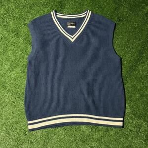 Original Use V-Neck Sweater Vest Blue White Stripe Preppy Size M Golf Knit New