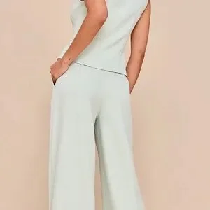 Stylish wide-leg pants from PrettyLittleThing. Light cream color. Perfect for a chic look.