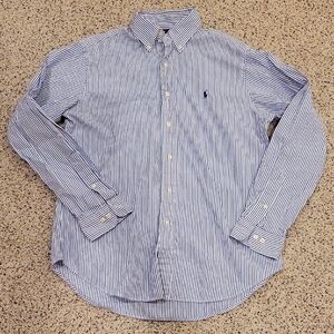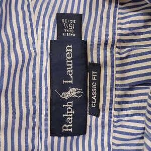 Ralph Lauren Blue White Striped Button Down Up Classic Fit Shirt Cotton Large