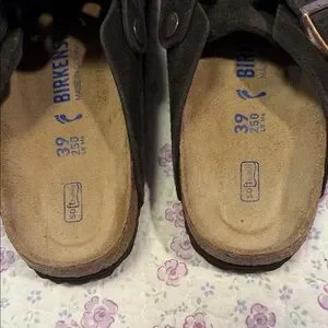 Classic Birkenstock Boston clog in dark brown suede. Soft suede upper with adjustable copper-tone buckles. Contoured cork footbed for support and comfort. Timeless slip-on design for everyday wear.