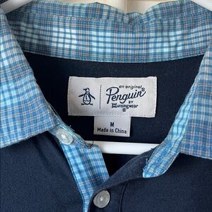 Original Penguin Men's Dark Blue Polo with Plaid Collar