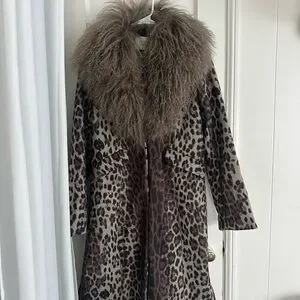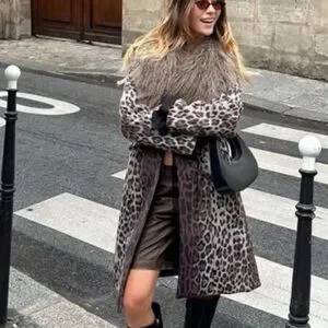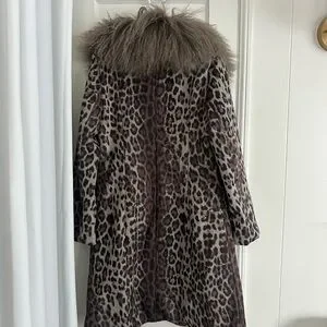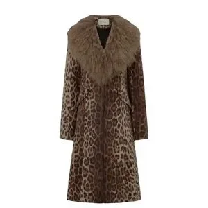 Statement leopard print trench with a plush faux fur shawl collar. Tailored fit for a polished silhouette. Rich brown tones add versatile, elevated style. Easy to layer over casual or dress looks.