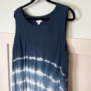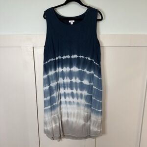 Pure Jill Tie Dye Dress XL Petite Blue Gray Stripe Cotton viscose blend. Dress is fully lined. Versatile in that it can be used as an everyday closet staple, loungewear or as a swim cover up.