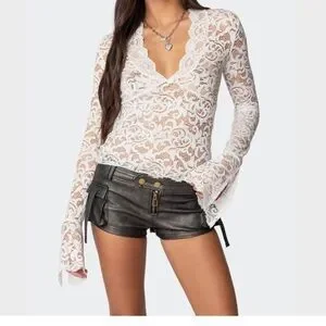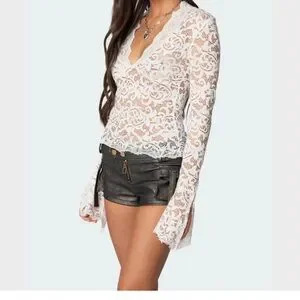 Edikted White Lace Bell Sleeve Blouse