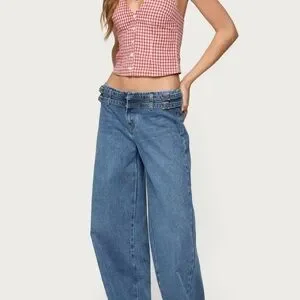 Edikted Red Checkered Halter Blouse