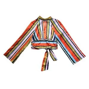 Stylish set with multicolor stripes. Features a top and pants.