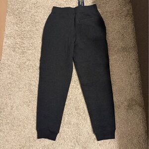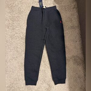 Boys Polo Ralph Lauren Sweatpants. Size 10/12. New with tags. Red logo. Has pockets. Jogger style. Dark grey heather color. One back pocket and drawstring in the front.