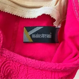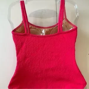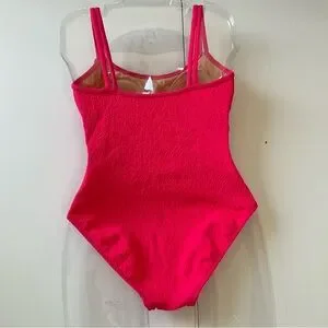 Tags - fuchsia Hot Pink One piece Swimsuit Textured Fabric Shelf Bra Summer Vacation Cruise Travel Swim Beach Pool Barbiecore Vintage Made in USA