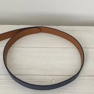 Enhance your outfit with this elegant navy blue belt featuring a stylish gold buckle. Perfect for adding a touch of sophistication to any ensemble.