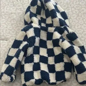 Babyface Boys Blue & Cream Checkered Sherpa Hooded Jacket 12-18M NWT