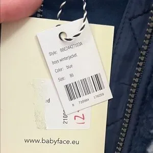 Adorable Babyface boys sherpa winter jacket in a stylish blue and cream checkered pattern. This cozy hooded jacket is brand new with tags and perfect for keeping your little one warm during fall and winter.