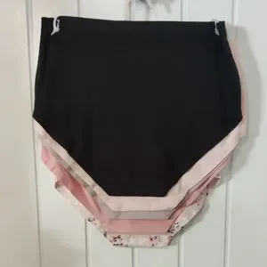 Laura Ashley five-pack of women's briefs. Includes a pink floral pair and coordinating solid colors. (Black, gray, pale pink and mauve)