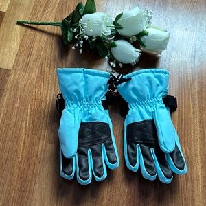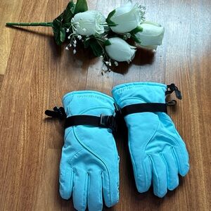 Light Blue Snow Ski Gloves with Adjustable Strap