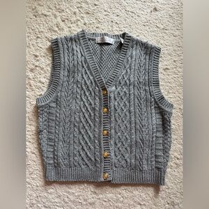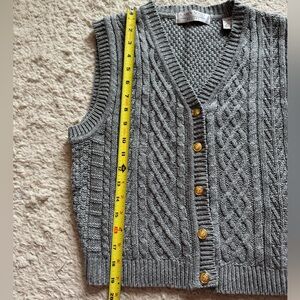 Vintage grey knit sweater vest button front. Gold buttons size ps please refer to measurements in photos
