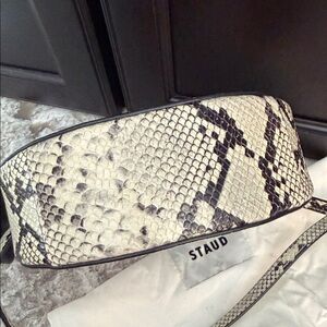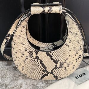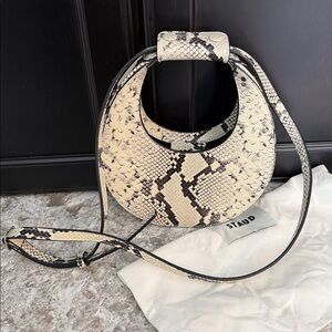 STAUD Goodnight Moon Leather Bag White Snake