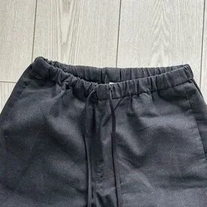Relaxed-fit joggers with an elastic waistband and drawstring. Smooth black fabric for a clean look. Straight leg silhouette for easy styling. Subtle pockets and minimal detailing.