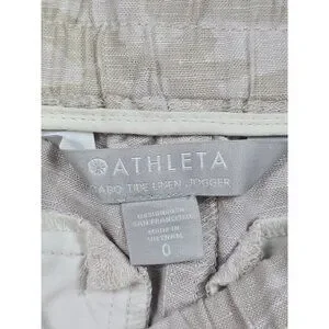 Athleta Cabo Tide 100% Linen Jogger Pants Size 0 Beige Camo Womens Relaxed Fit