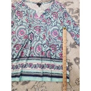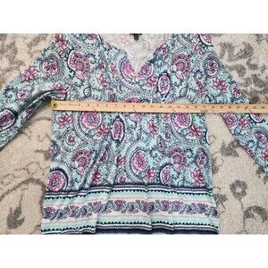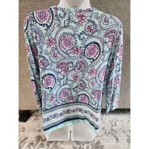 Talbots Women's Boho Floral 3/4 Sleeve V-Neck Top Pima Cotton/Modal Size Medium