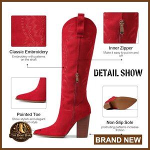 Brand new, never worn, and in flawless condition — these statement cowboy boots deliver a bold, Western-inspired look perfect for costume events, themed parties, or everyday dramatic flair. The fit is secure, the heel is a confident height, and the detailed embroidery makes a striking impression.