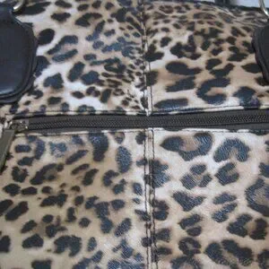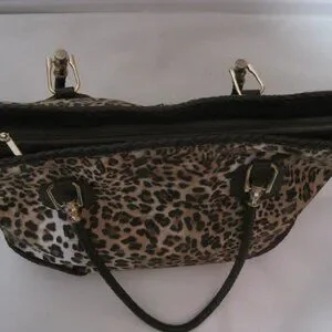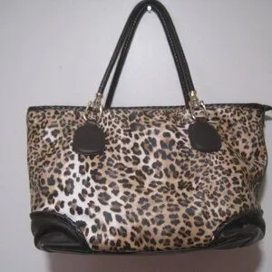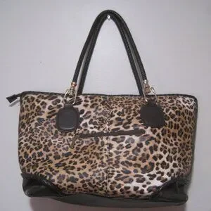 This large Charming Charlie Brown Leopard Print Floral Interior Zipper Leather Purse is a stylish and functional accessory for women on the go. With a rectangular shape and a zipper closure, this shoulder bag features a striking leopard print exterior and gold hardware accents. The interior includes inner pockets for organization, while the brown faux leather and leather handles add both comfort and durability. Perfect for travel or everyday use, this purse combines fashion and practicality in one chic design. Made in China, this purse is a statement piece that will turn heads wherever you go.