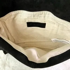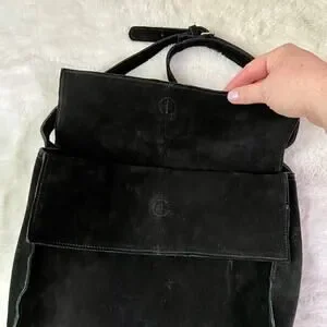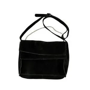 Soft suede 100% cow leather crossbody bag with a cotton and linen inner lining with pocket. Adjustable crossbody strap and a silver chain which can be used also or as a decoration. Fold-over with magnetic closure. It's in excellent preowned condition. Measurements included in photos.