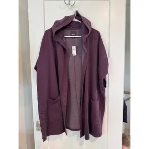 Aerie Womens Plum Purple Fleece Hooded Open Front Wrap Cardigan XS/S NWT