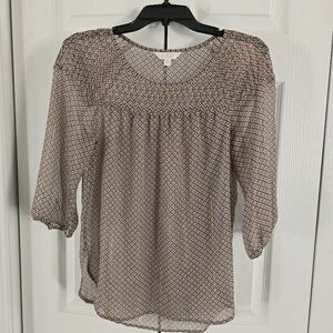 LC Lauren Conrad Women's Floral Pattern 3/4 Sleeve Round Neck Blouse size XS