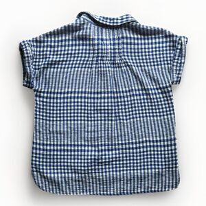 This Casa Cabana button up shirt features breezy gauze material, blue gingham pattern and cap sleeves for a relaxed look. The boxy fit and longer length make this casual shirt idea for summer or spring outfits. Made of 100% cotton, this shirt is comfortable and perfect for travel.