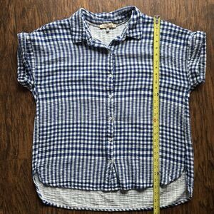Casa Cabana Womens Gauze Button Up Shirt Size XL Blue White Gingham 100% Cotton