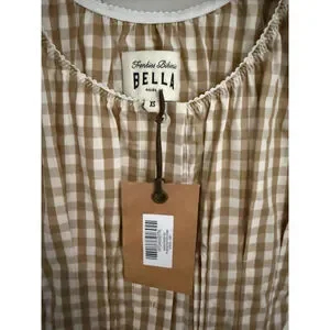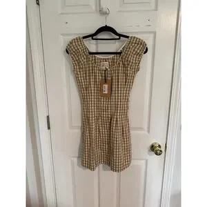 Frankies Bikinis Bella Mini Dress XS Brown Gingham NWT Puff Sleeve Malibu