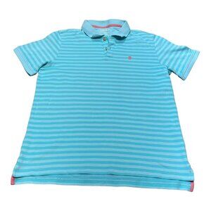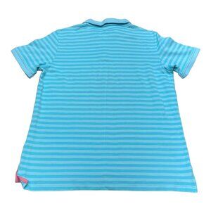 Izod Golf Men's Blue Striped Polo Collar Shirt Size Large Pink Logo Casual Sport