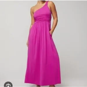 Soma One Shoulder Soft Jersey Knit Maxi Dresd Wild Berry Size M NWT