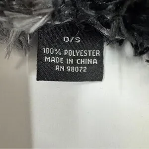 Soft plush fuzzy scarf in a multi-color striped pattern. Features black, brown, gray and cream sections. Warm, textured knit. Easy to style with coats and sweaters.