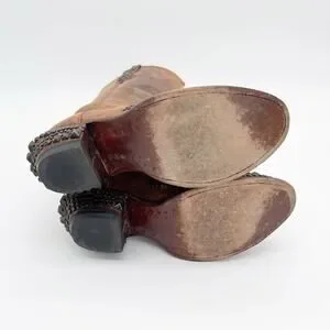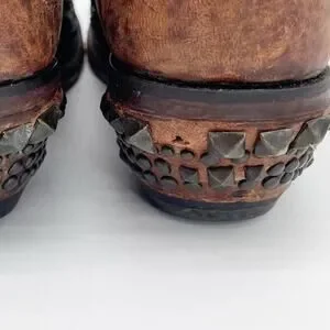 Lucchese Women’s 9 Brown Mad Dog Studded Wingtip Distressed Western Cowgirl Boots