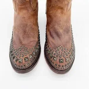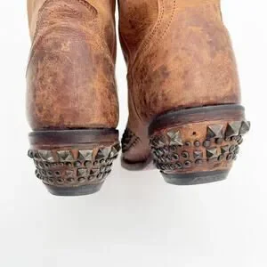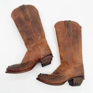 Lucchese Women’s 9 Brown Mad Dog Stud Wingtip Distressed Western Cowgirl Boots