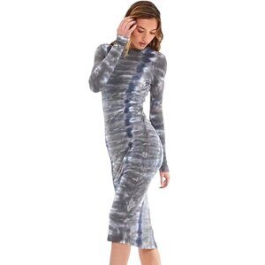 Elevate your wardrobe with this chic gray tie-dye dress. Perfect for any occasion, this long sleeve dress offers a modern and stylish look.