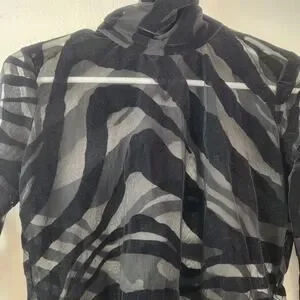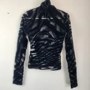 Just Cavalli Black Sheer Top Shirt Long Sleeve Size 40 US Small High Neck Velvet