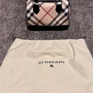 Stylish Burberry tote with iconic checkered pattern. Features black handles and trim. Perfect for everyday use.