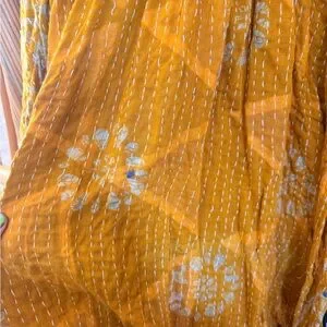 Disclosure: Our vintage styles have lived a full life before becoming the designs in our shop. Fabrics may have small threads or holes in the layers. Color inconsistency or small stains may be present. The saris are sewn together and extend the life of each design. Imperfections should be celebrated.