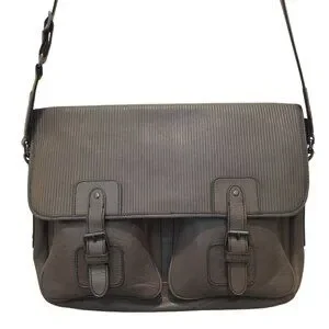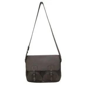 This brown messenger bag combines functionality with modern style, featuring a textured flap, dual front buckle pockets, and an adjustable striped strap for versatile carrying options.