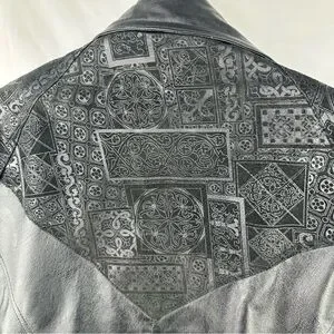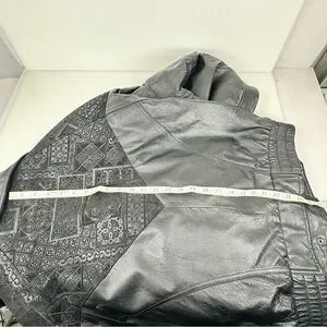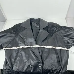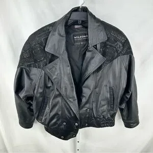 Vintage 80s Wilsons Womens Black Leather Batwing Bomber Jacket Embossed Sz XL