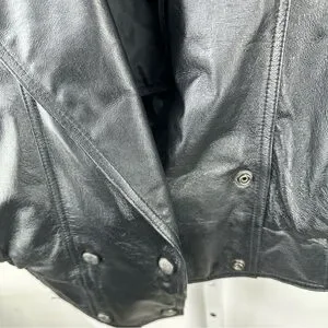 This Vintage 80s Wilsons Women's Black Leather Batwing Bomber Jacket in size XL exudes a classic style with a unique batwing silhouette from the 1980s. The embossed details on the leather give it a retro look, perfect for casual occasions. Made by the iconic brand Wilsons, this bomber jacket is a timeless piece that adds a touch of vintage flair to any outfit.